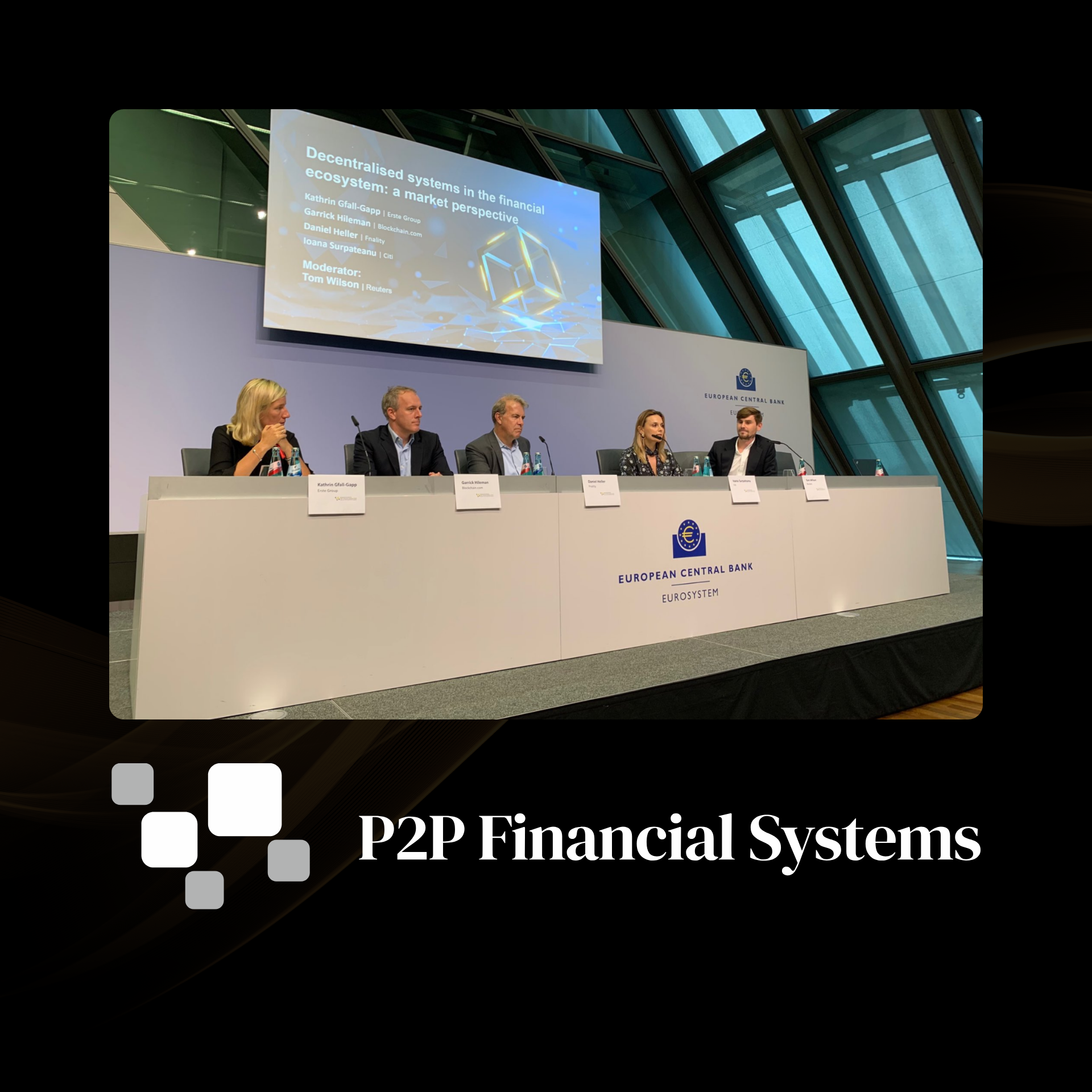 The Peer-to-Peer Financial Systems Workshop (P2PFISY) is an annual summit where academics, central bankers, regulators, legislators, and practitioners are brought together to share the latest developments in global P2P and decentralised financial systems.